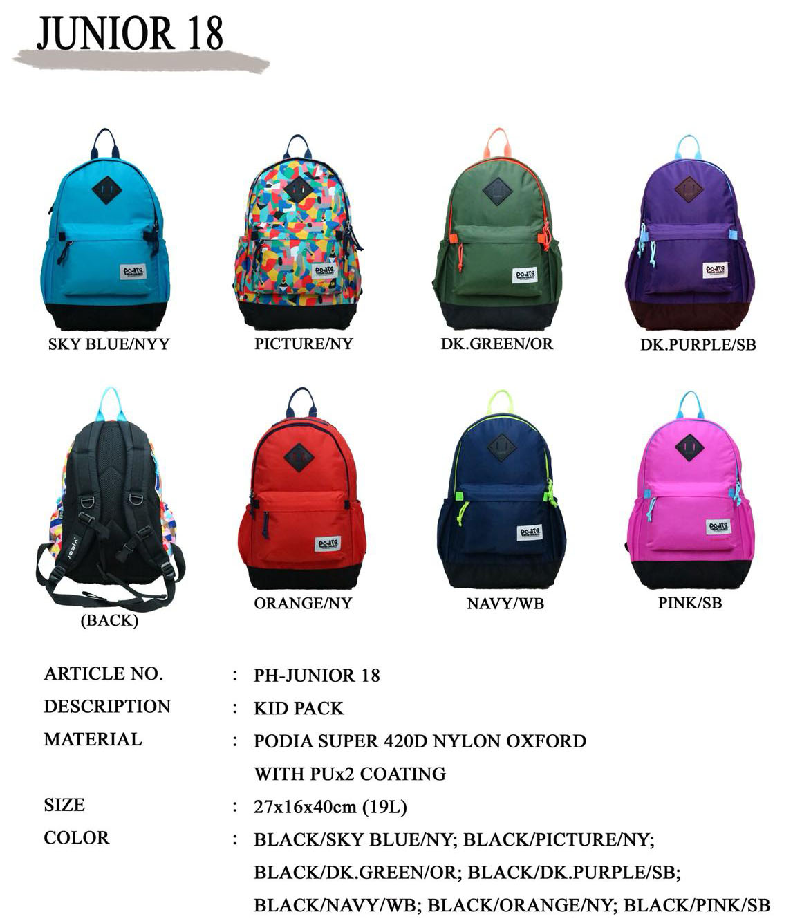 | Podia Adventure Junior 18 雙肩背包 :$280 | ||||||||